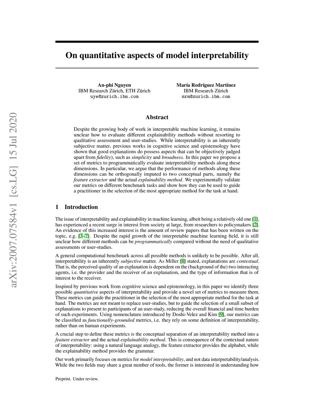 On quantitative aspects of model interpretability