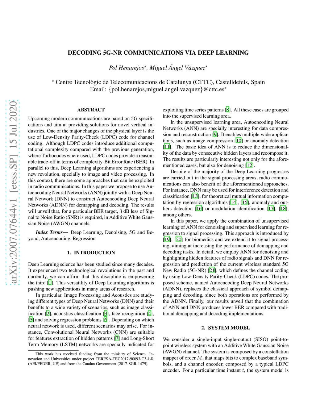 Upcoming modern communications are based on 5G specifications and aim at providing solutions for novel vertical industries. One of the major changes of the physical layer is the use of Low-Density Parity-Check (LDPC) code for channel coding. Although LDPC codes introduce additional computational complexity compared with the previous generation, where Turbocodes where used, LDPC codes provide a reasonable trade-off in terms of complexity-Bit Error Rate (BER). In parallel to this, Deep Learning algorithms are experiencing a new revolution, specially to image and video processing. In this context, there are some approaches that can be exploited in radio communications. In this paper we propose to use Autoencoding Neural Networks (ANN) jointly with a Deep Neural Network (DNN) to construct Autoencoding Deep Neural Networks (ADNN) for demapping and decoding. The results will unveil that, for a particular BER target, dB less of Signal to Noise Ratio (SNR) is required, in Additive White Gaussian Noise (AWGN) channels.