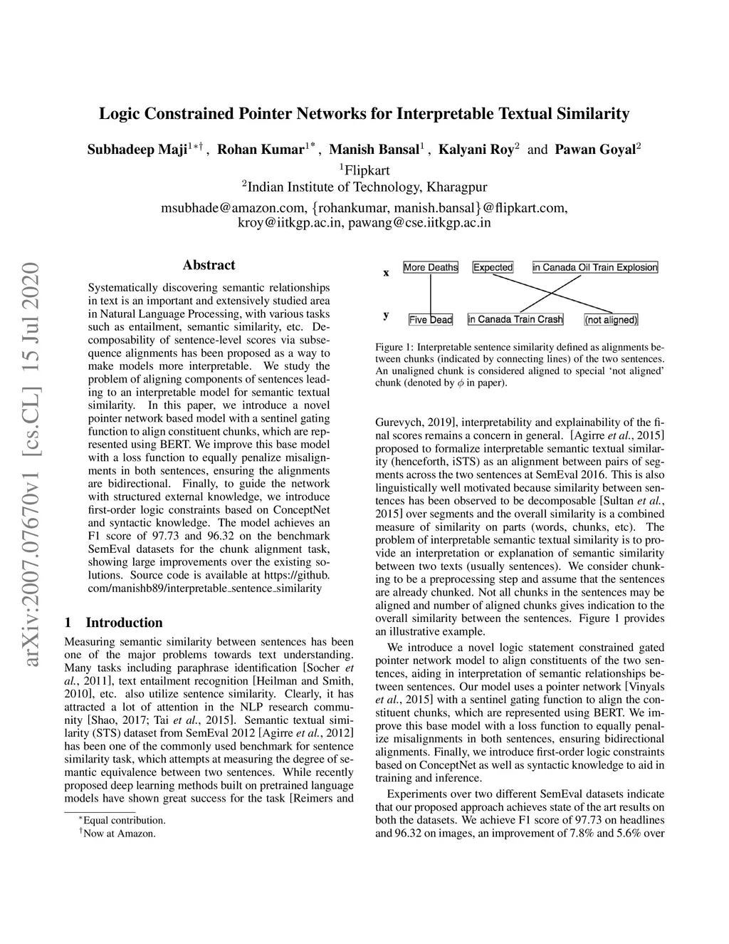 Logic Constrained Pointer Networks for Interpretable Textual Similarity