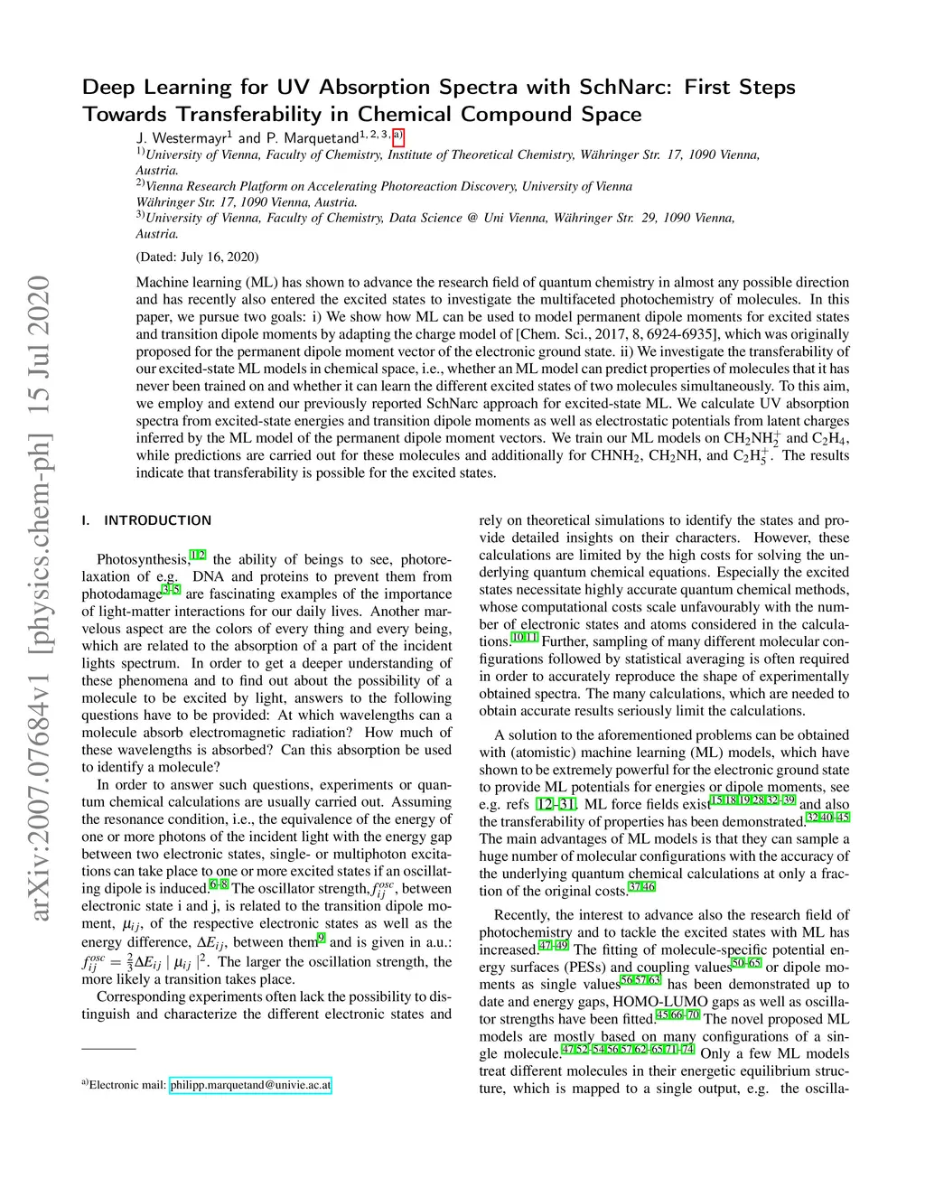 Deep Learning for UV Absorption Spectra with SchNarc: First Steps