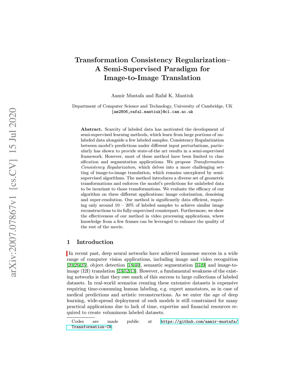 Transformation Consistency Regularization- A Semi-Supervised Paradigm