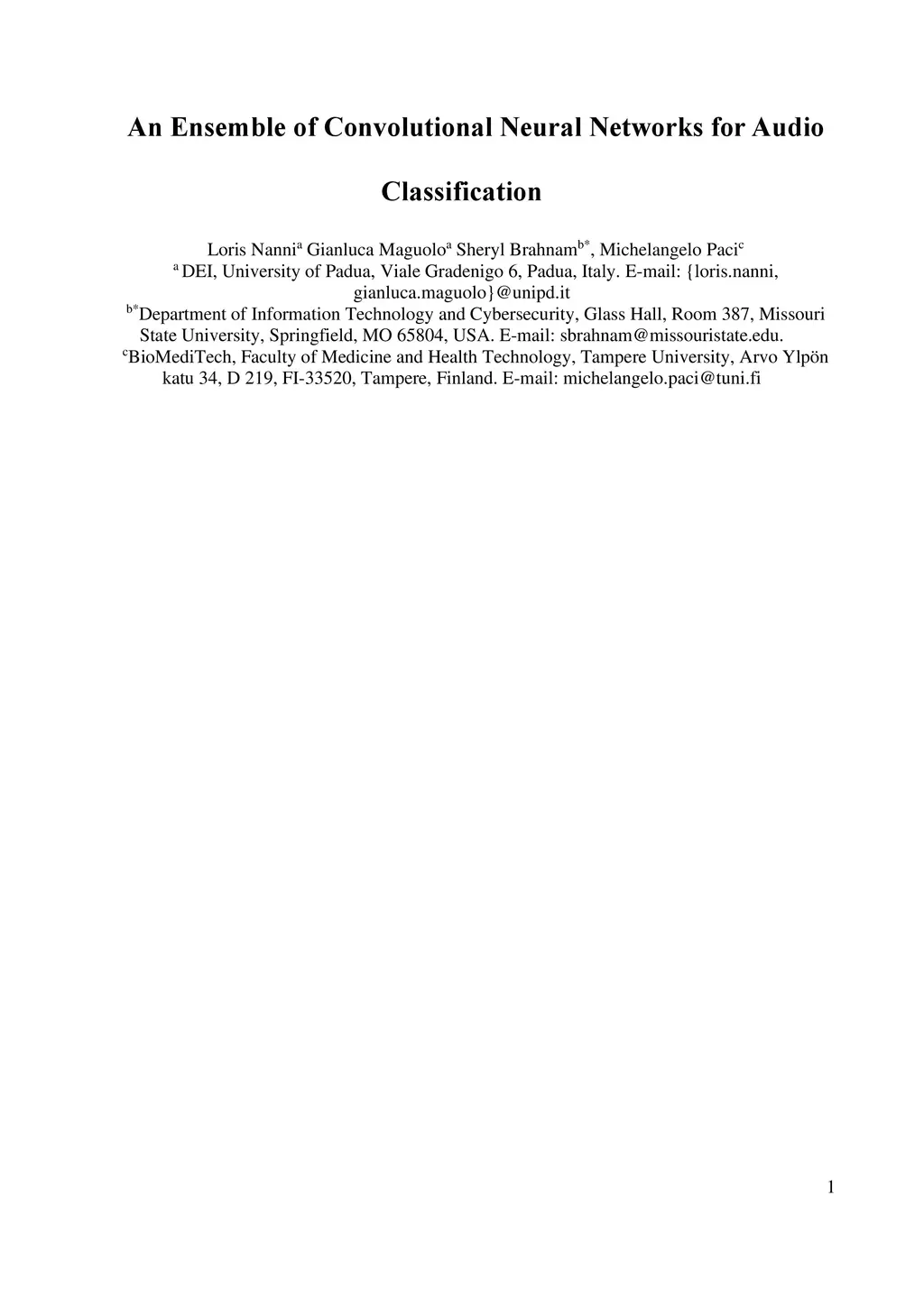 An Ensemble of Convolutional Neural Networks for Audio Classification