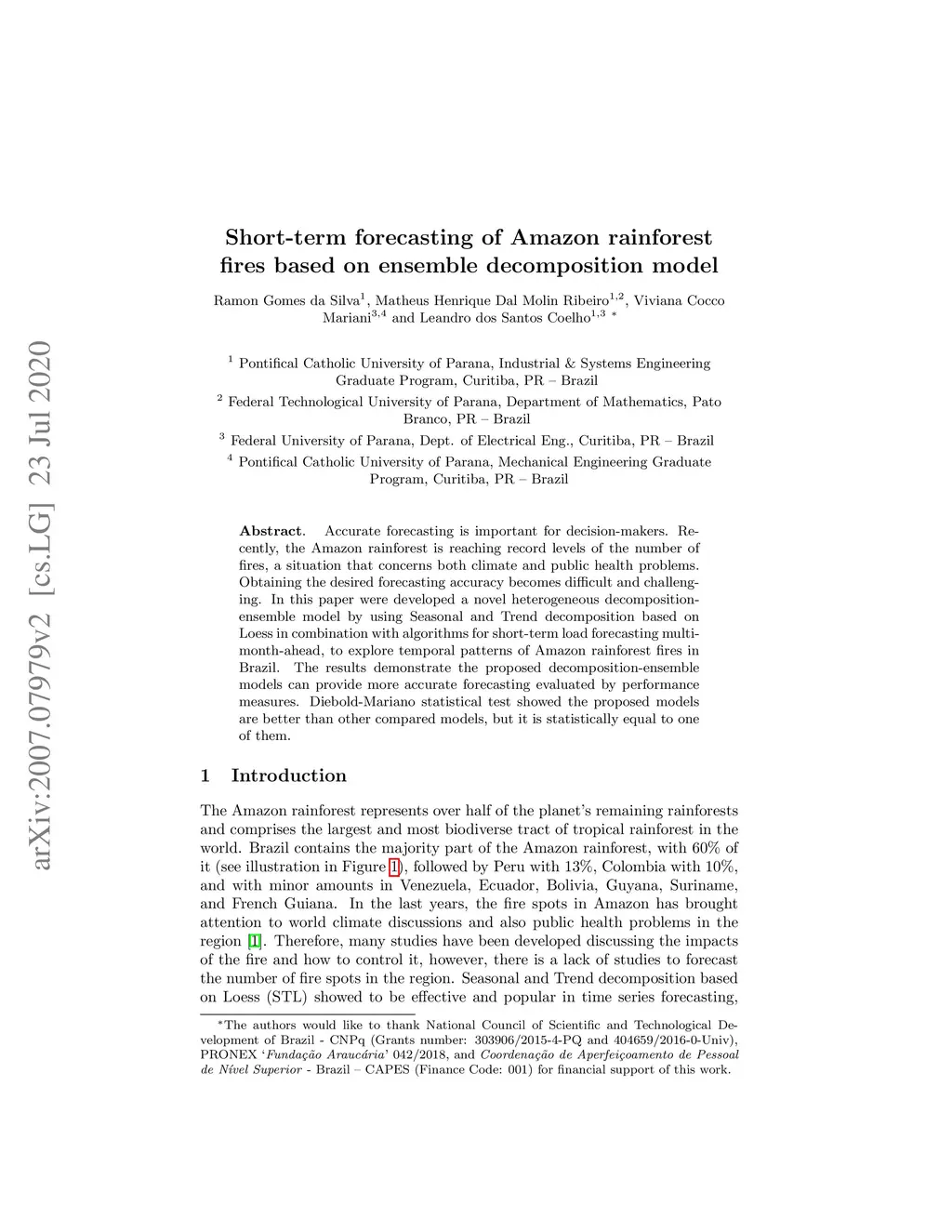 Short-term forecasting of Amazon rainforest fires based on ensemble