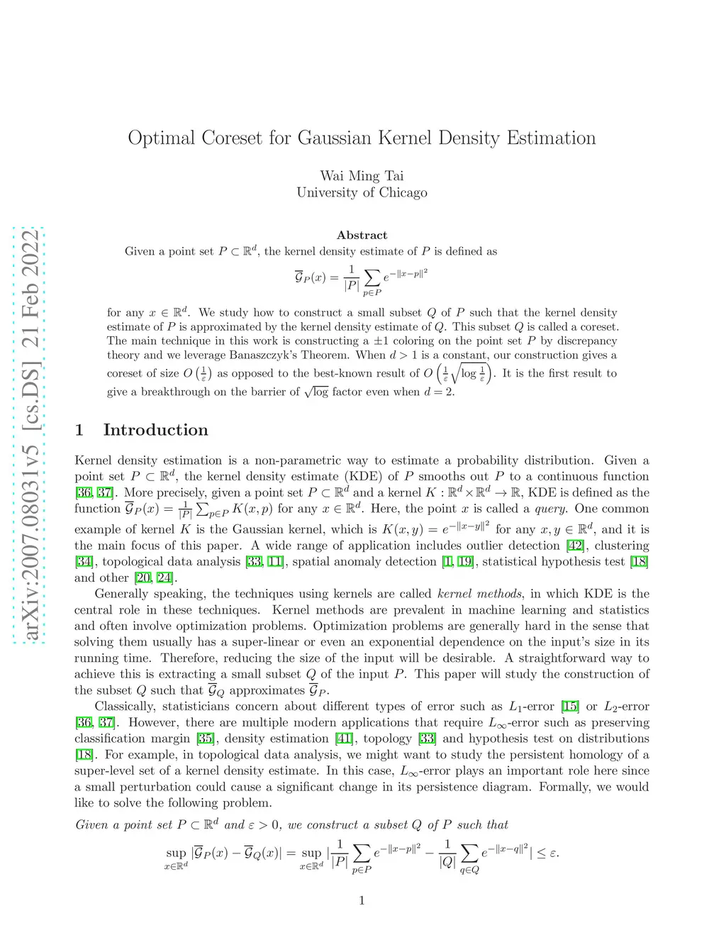 Optimal Coreset for Gaussian Kernel Density Estimation