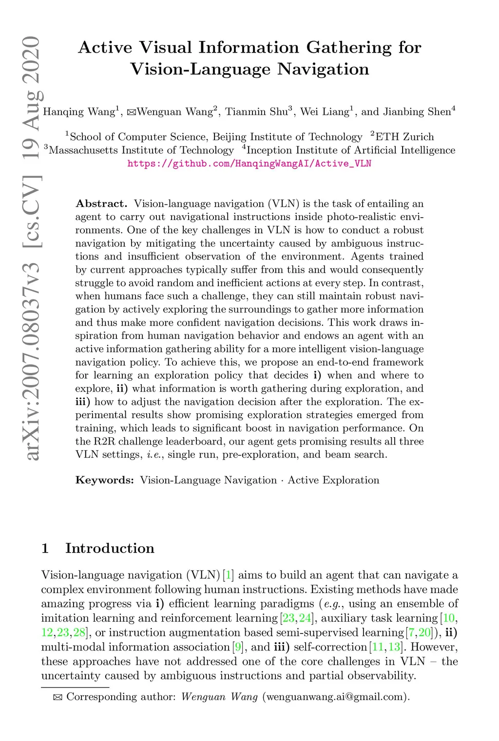 Vision-language navigation (VLN) is the task of entailing an agent to carry out navigational instructions inside photo-realistic environments. One of the key challenges in VLN is how to conduct a robust navigation by mitigating the uncertainty caused by ambiguous instructions and insufficient observation of the environment. Agents trained by current approaches typically suffer from this and would consequently struggle to avoid random and inefficient actions at every step. In contrast, when humans face such a challenge, they can still maintain robust navigation by actively exploring the surroundings to gather more information and thus make more confident navigation decisions. This work draws inspiration from human navigation behavior and endows an agent with an active information gathering ability for a more intelligent vision-language navigation policy. To achieve this, we propose an end-to-end framework for learning an exploration policy that decides i) when and where to explore, ii) what information is worth gathering during exploration, and iii) how to adjust the navigation decision after the exploration. The experimental results show promising exploration strategies emerged from training, which leads to significant boost in navigation performance. On the R2R challenge leaderboard, our agent gets promising results all three VLN settings, i.e., single run, pre-exploration, and beam search.