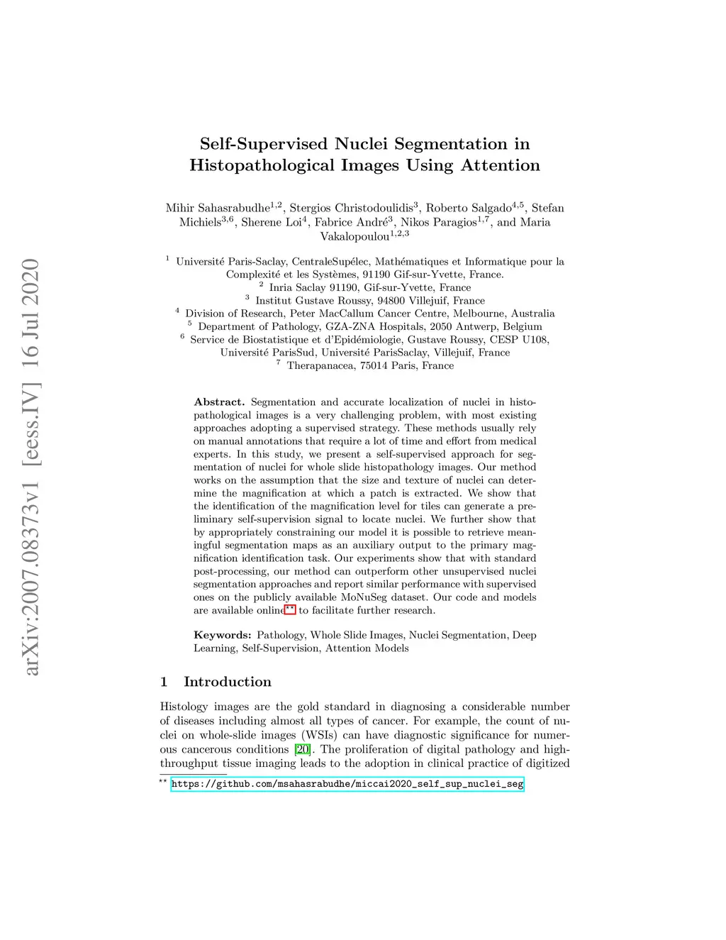 Self-Supervised Nuclei Segmentation in Histopathological Images Using