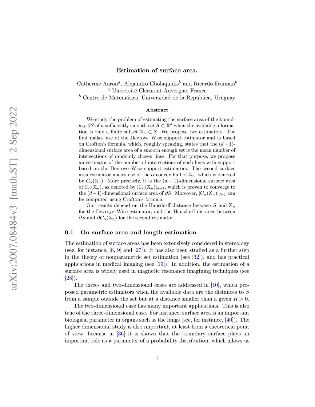 Estimation of surface area