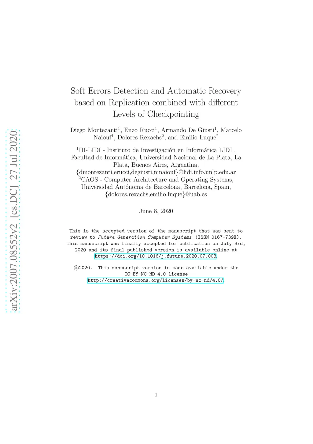 Soft Errors Detection and Automatic Recovery based on Replication