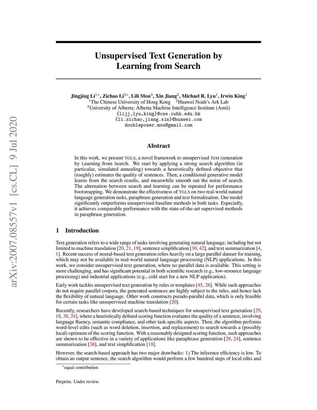 Unsupervised Text Generation by Learning from Search