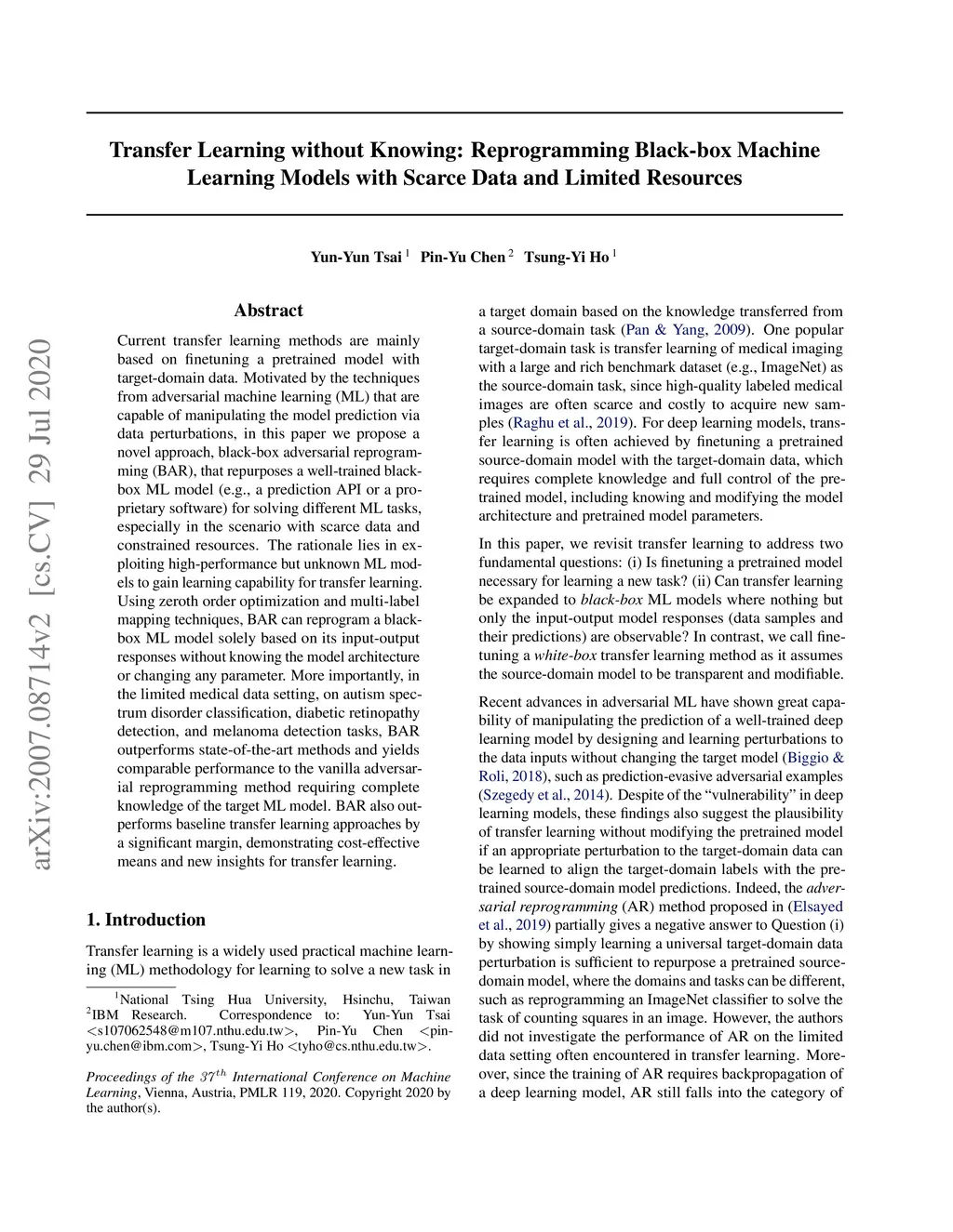 Transfer Learning without Knowing: Reprogramming Black-box Machine
