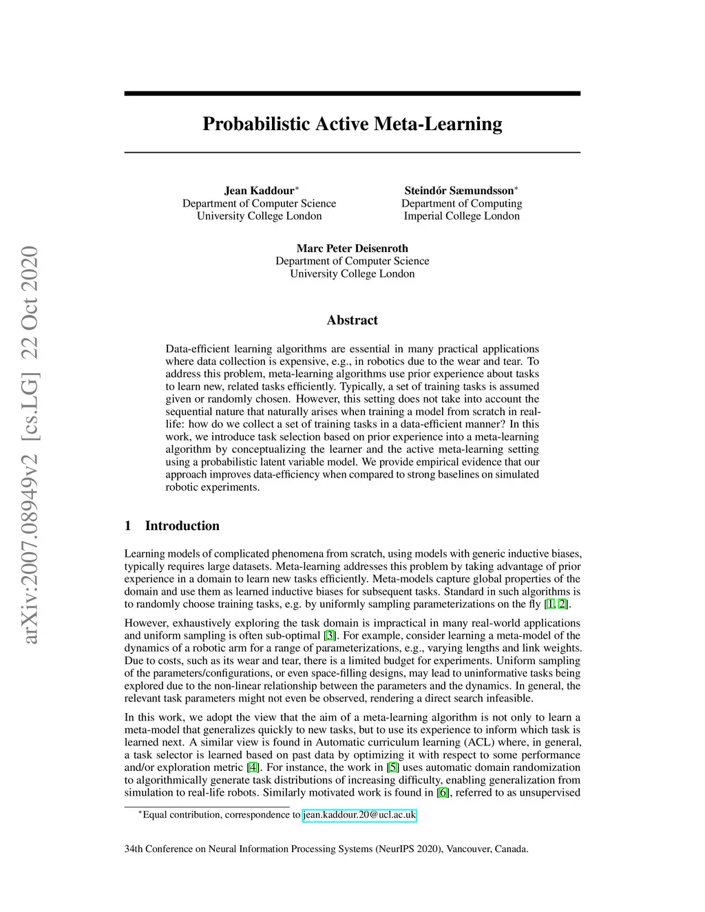 Probabilistic Active Meta-Learning