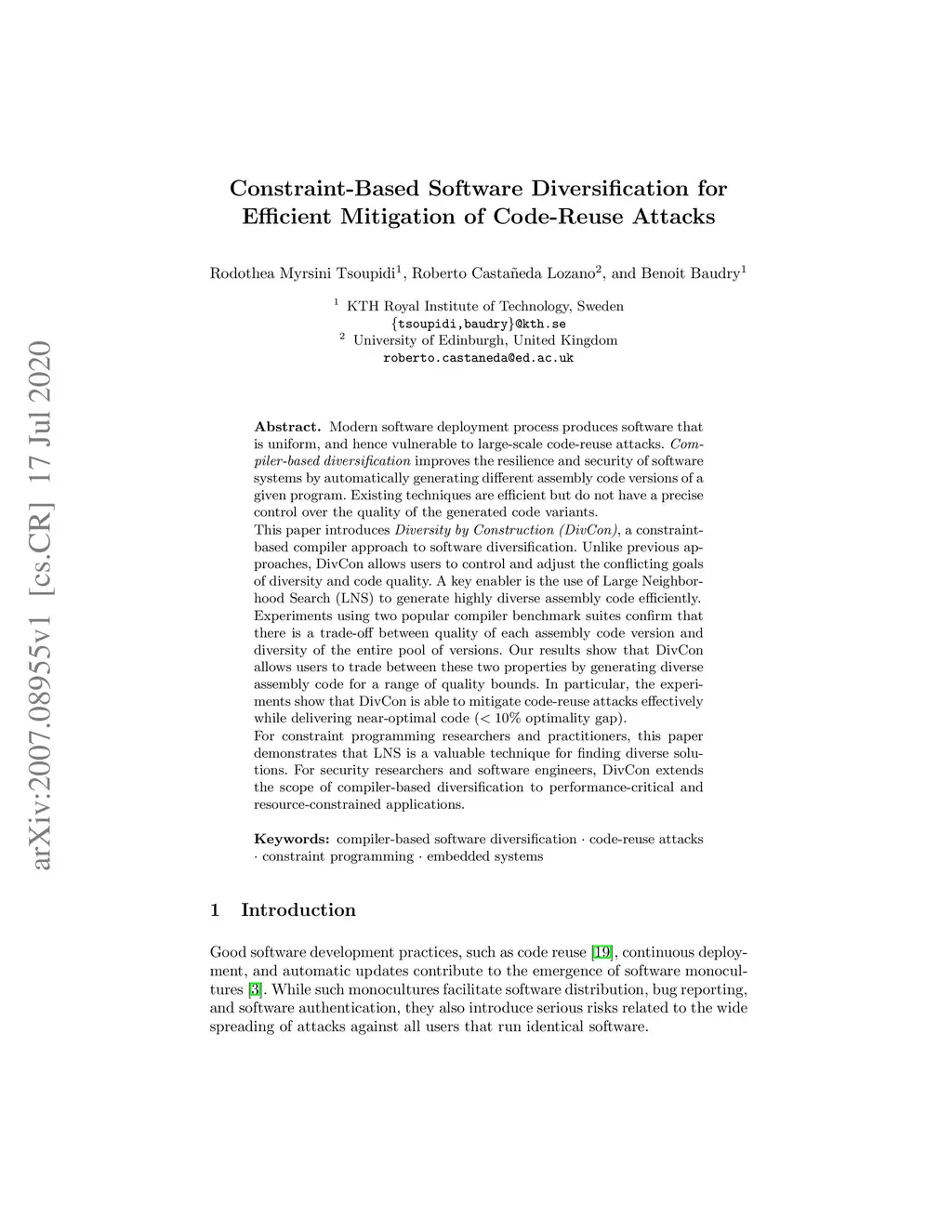 Constraint-Based Software Diversification for Efficient Mitigation of
