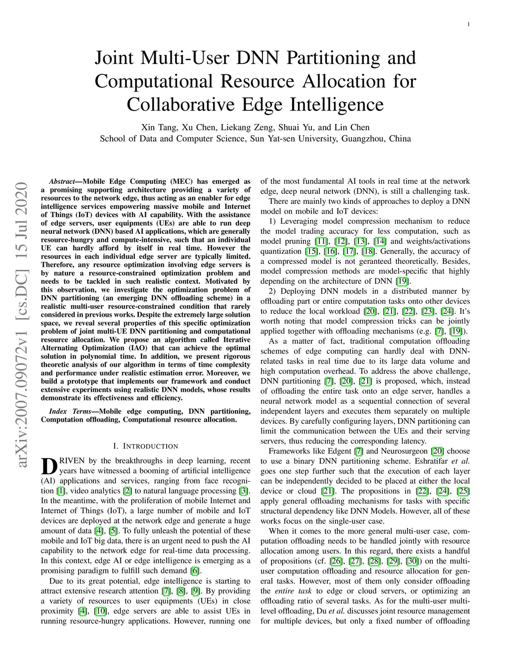 Joint Multi-User DNN Partitioning and Computational Resource Allocation