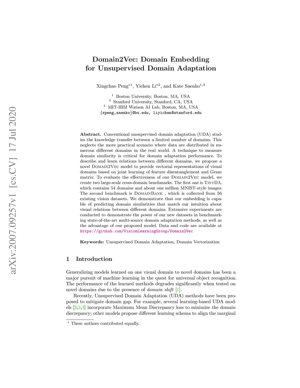 Domain2Vec: Domain Embedding for Unsupervised Domain Adaptation