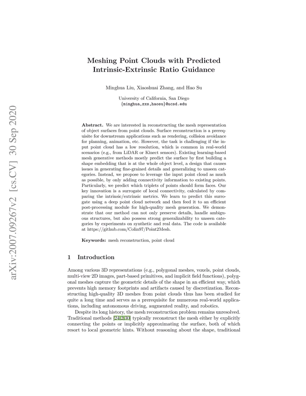 Meshing Point Clouds with Predicted Intrinsic-Extrinsic Ratio Guidance
