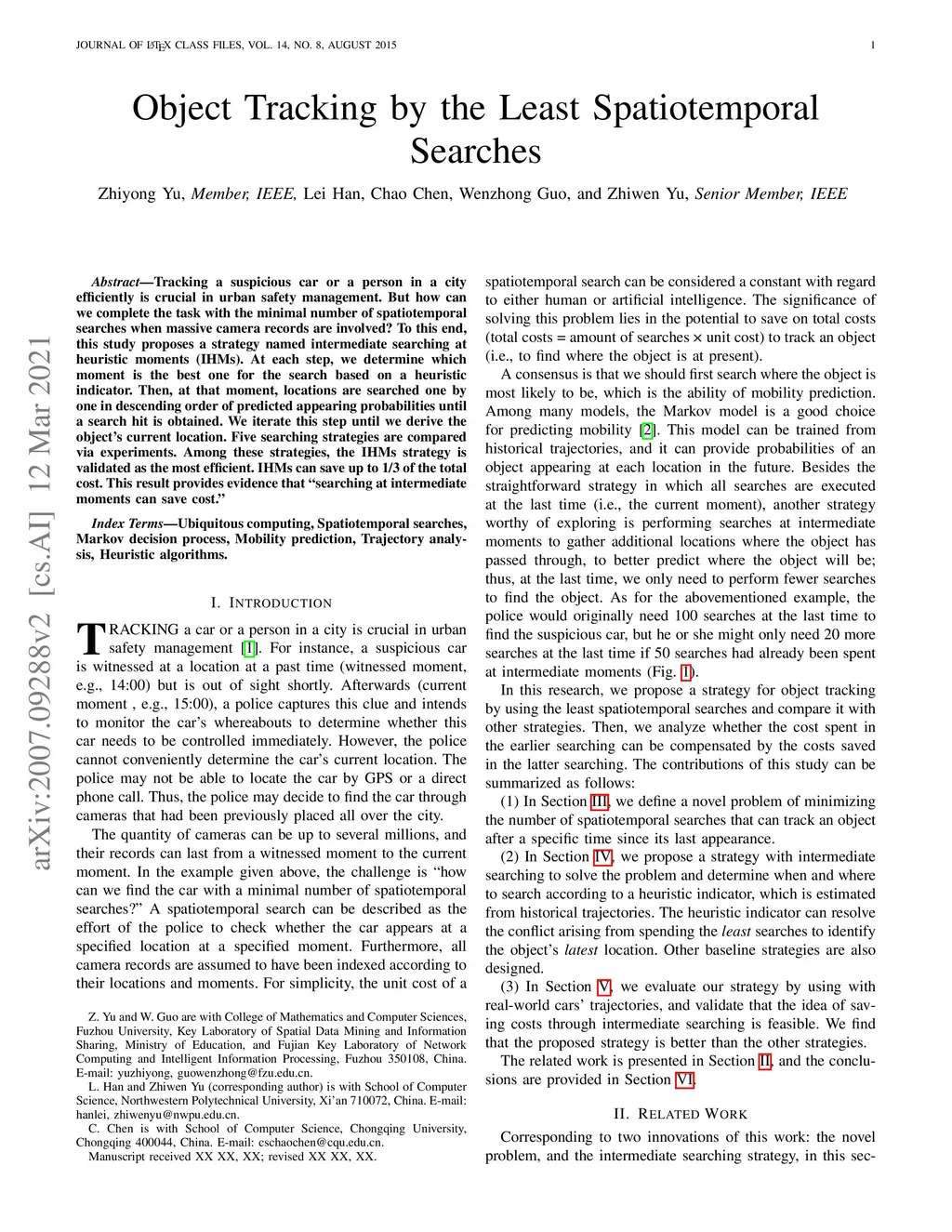 Object Tracking by Least Spatiotemporal Searches
