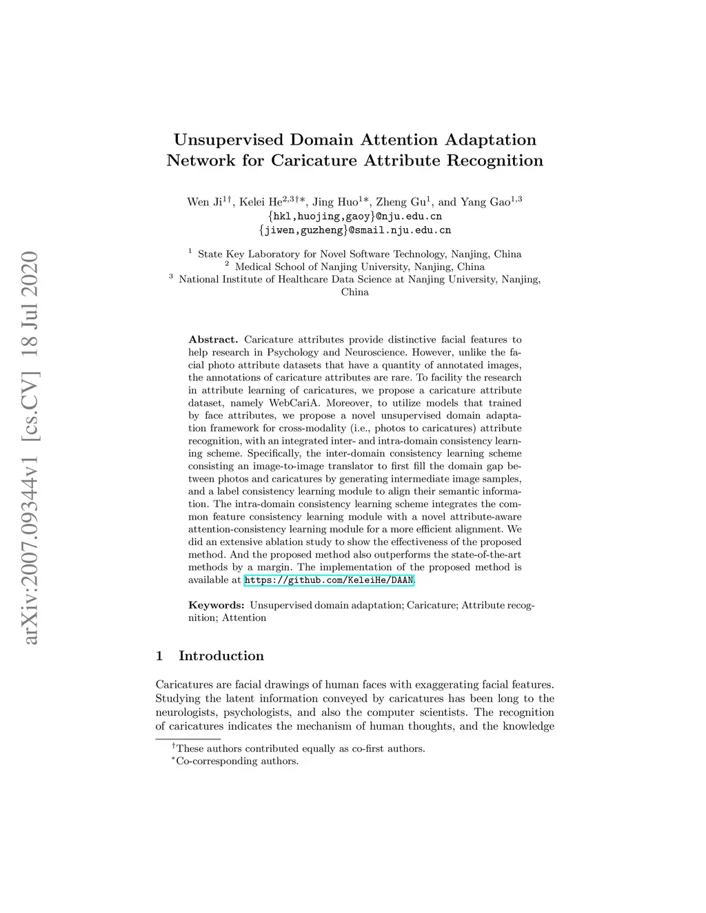 Unsupervised Domain Attention Adaptation Network for Caricature
