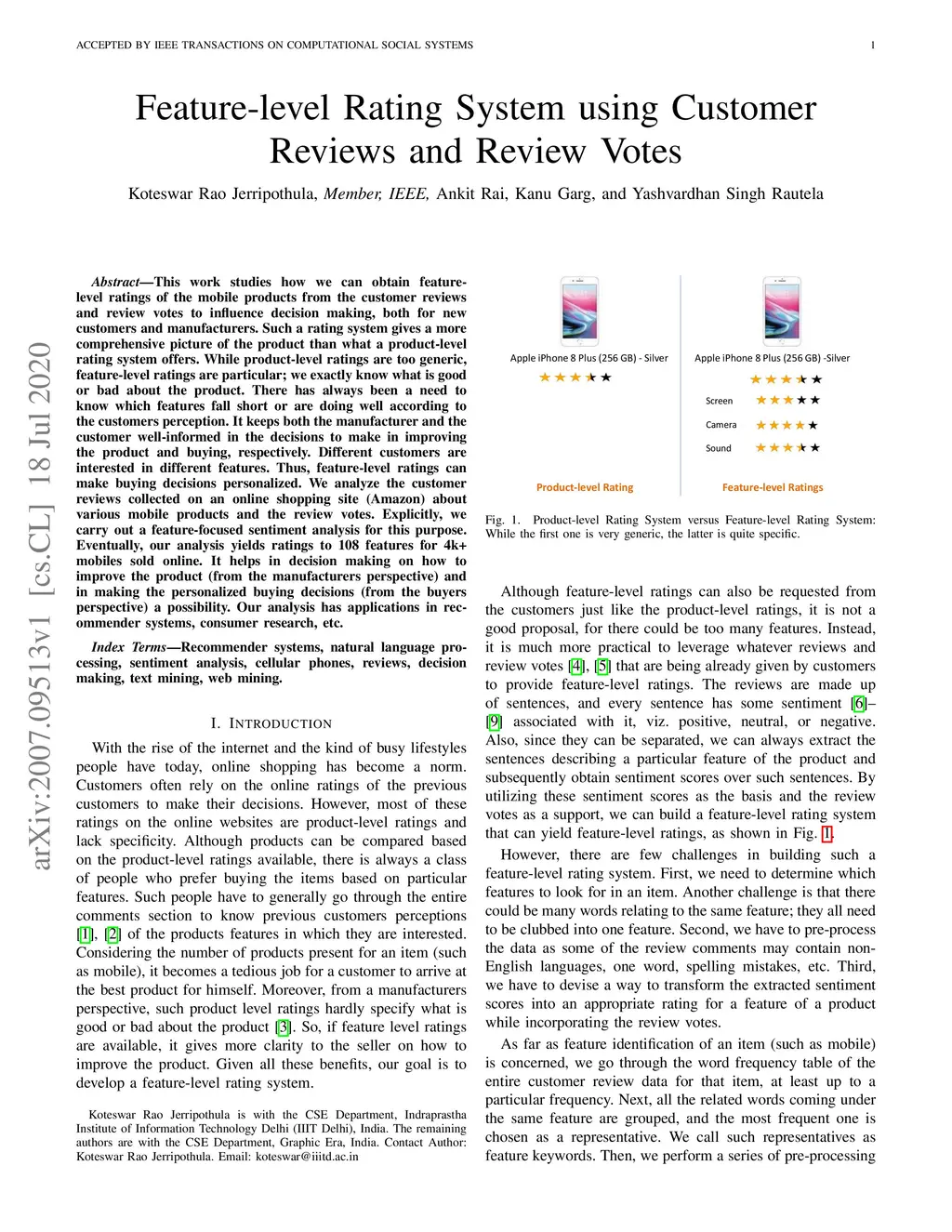 Feature-level Rating System using Customer Reviews and Review Votes