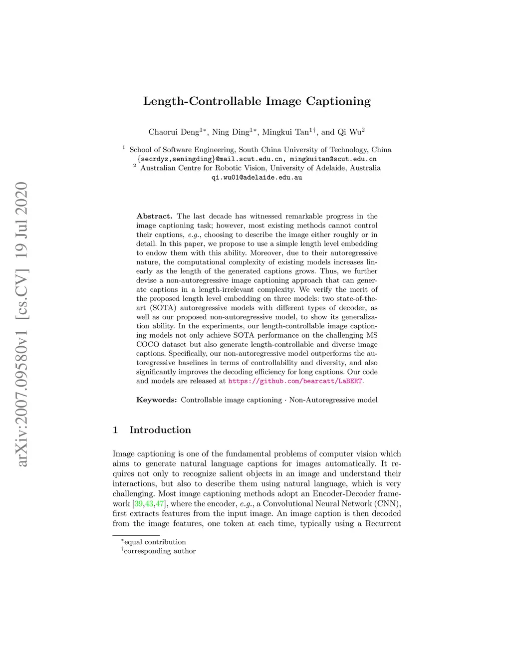 The last decade has witnessed remarkable progress in the image captioning task; however, most existing methods cannot control their captions, \emph{e.g.}, choosing to describe the image either roughly or in detail. In this paper, we propose to use a simple length level embedding to endow them with this ability. Moreover, due to their autoregressive nature, the computational complexity of existing models increases linearly as the length of the generated captions grows. Thus, we further devise a non-autoregressive image captioning approach that can generate captions in a length-irrelevant complexity. We verify the merit of the proposed length level embedding on three models: two state-of-the-art (SOTA) autoregressive models with different types of decoder, as well as our proposed non-autoregressive model, to show its generalization ability. In the experiments, our length-controllable image captioning models not only achieve SOTA performance on the challenging MS COCO dataset but also generate length-controllable and diverse image captions. Specifically, our non-autoregressive model outperforms the autoregressive baselines in terms of controllability and diversity, and also significantly improves the decoding efficiency for long captions. Our code and models are released at \textcolor{magenta}{\texttt{https://github.com/bearcatt/LaBERT}}.