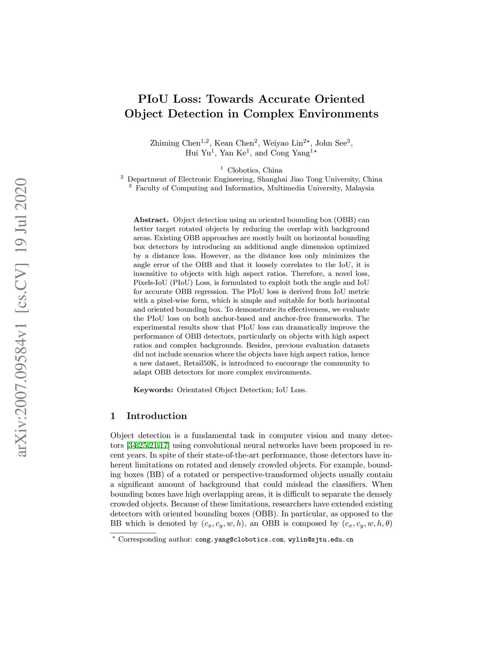 PIoU Loss: Towards Accurate Oriented Object Detection in Complex