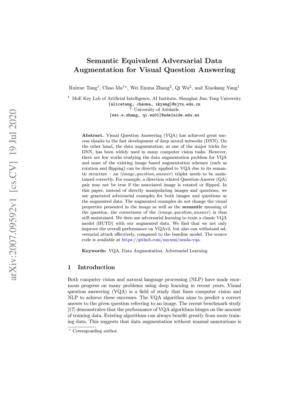 Semantic Equivalent Adversarial Data Augmentation for Visual Question