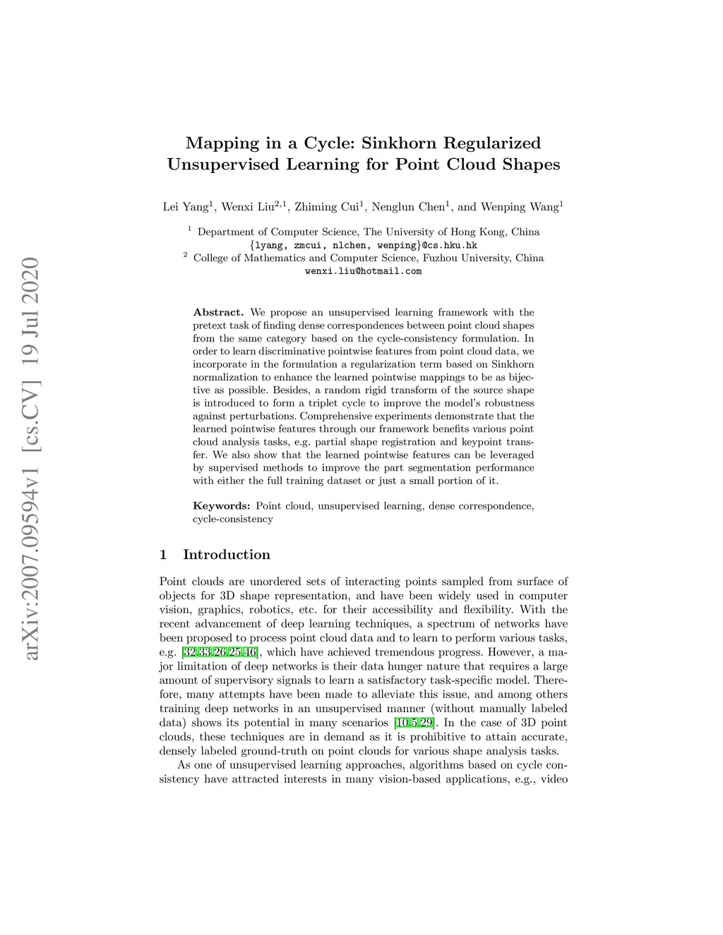 Mapping in a cycle: Sinkhorn regularized unsupervised learning for point