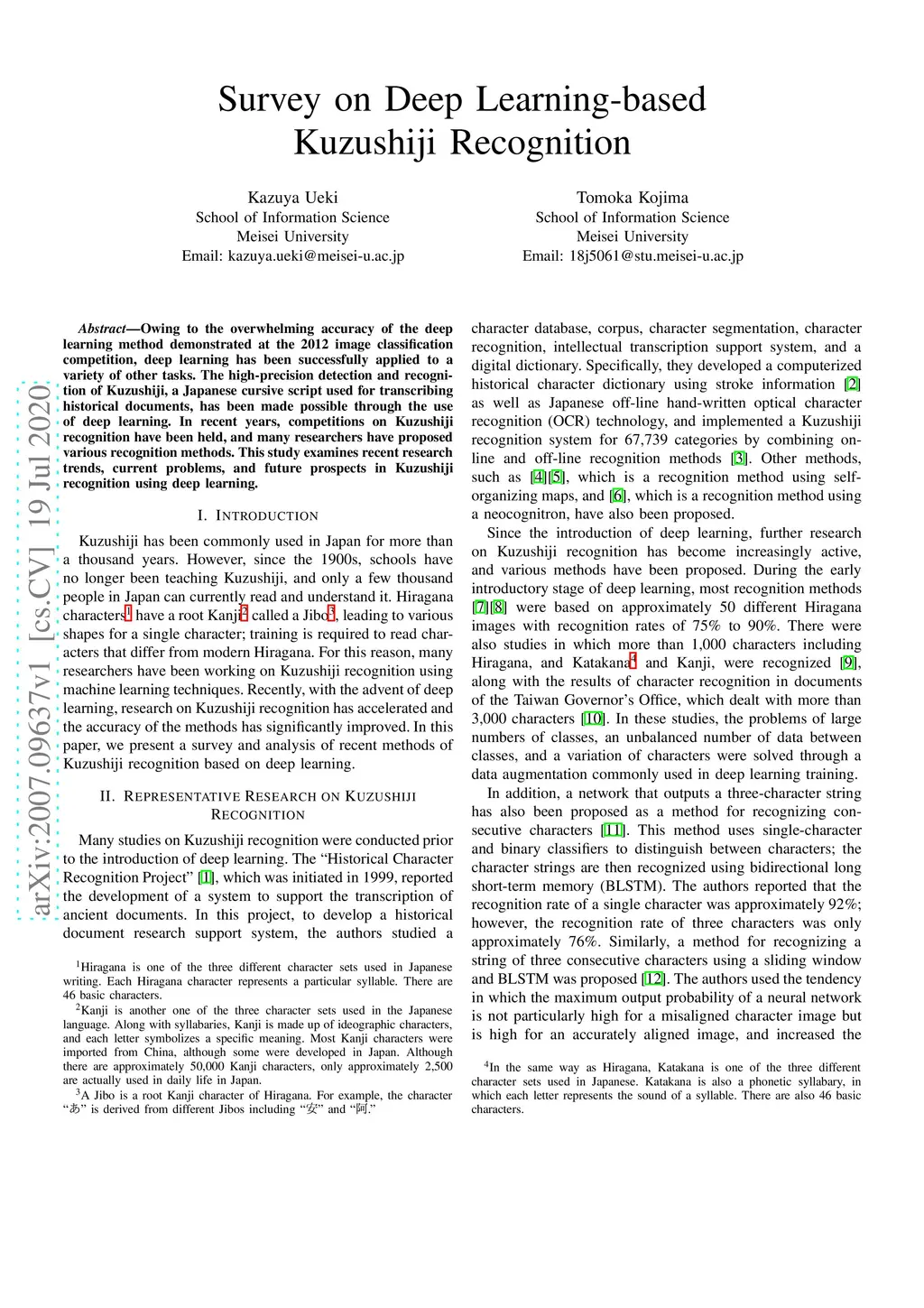 Survey on Deep Learning-based Kuzushiji Recognition