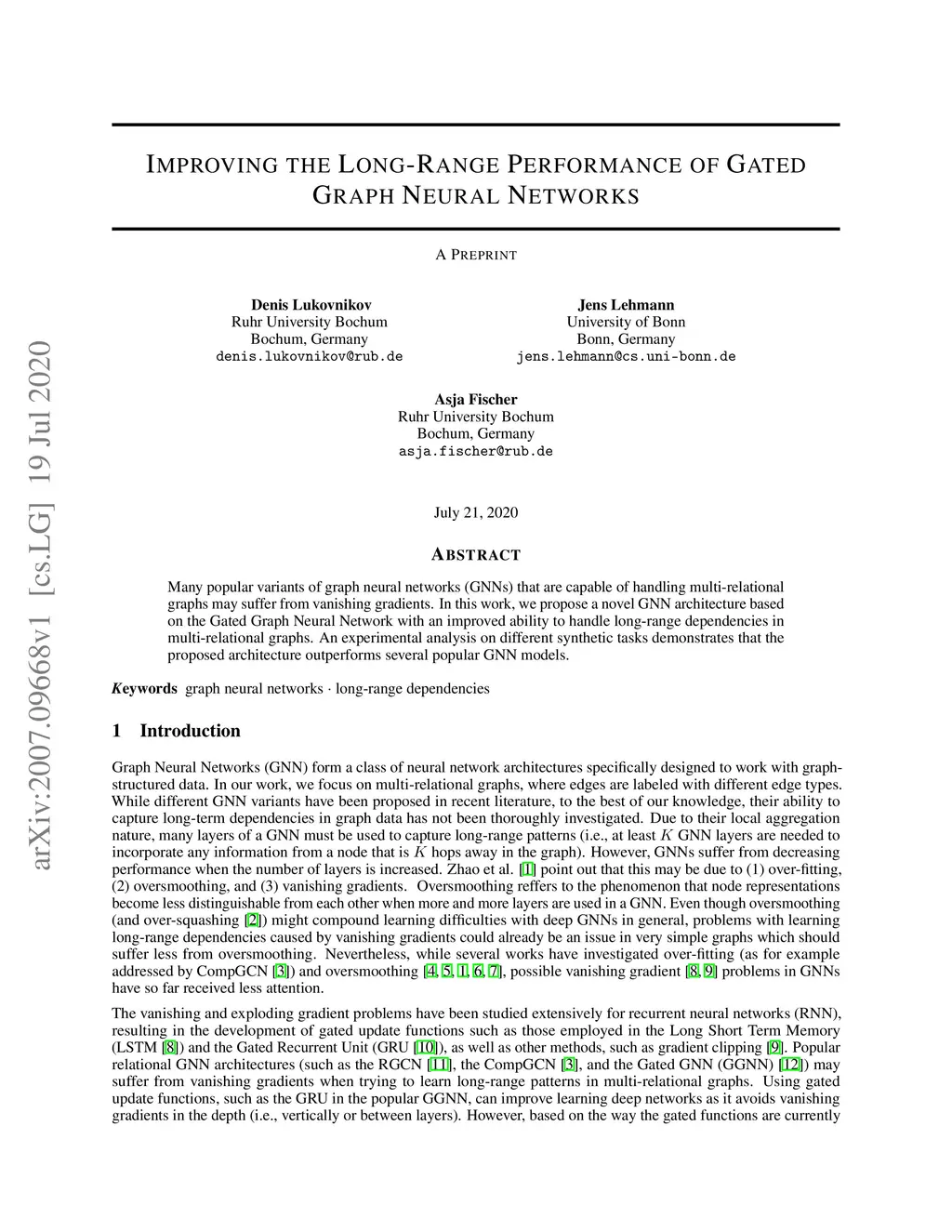 Many popular variants of graph neural networks (GNNs) that are capable of handling multi-relational graphs may suffer from vanishing gradients. In this work, we propose a novel GNN architecture based on the Gated Graph Neural Network with an improved ability to handle long-range dependencies in multi-relational graphs. An experimental analysis on different synthetic tasks demonstrates that the proposed architecture outperforms several popular GNN models.