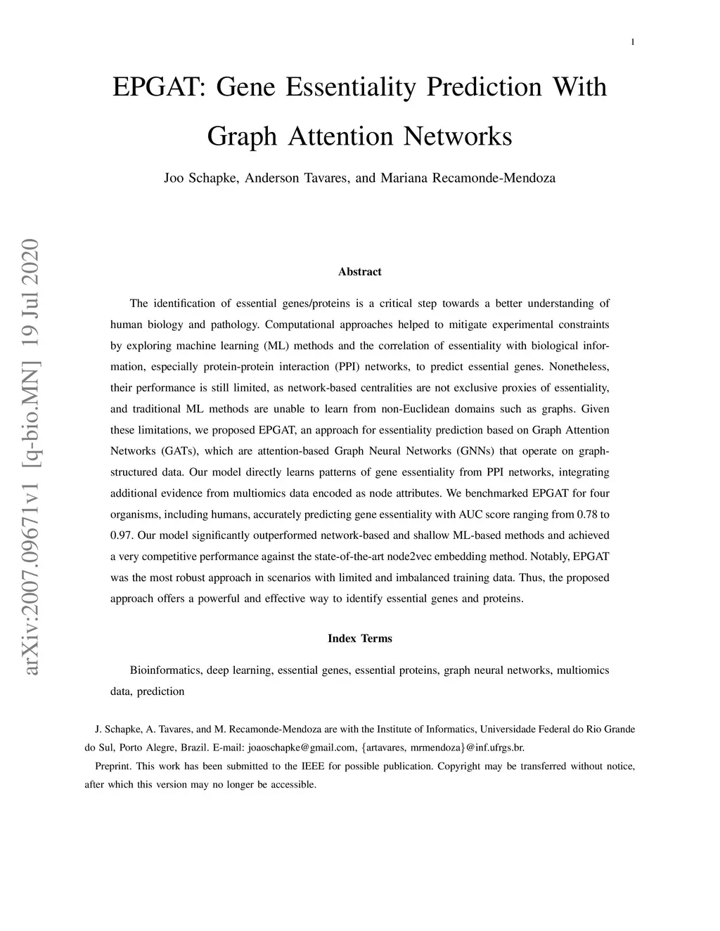 EPGAT: Gene Essentiality Prediction With Graph Attention Networks