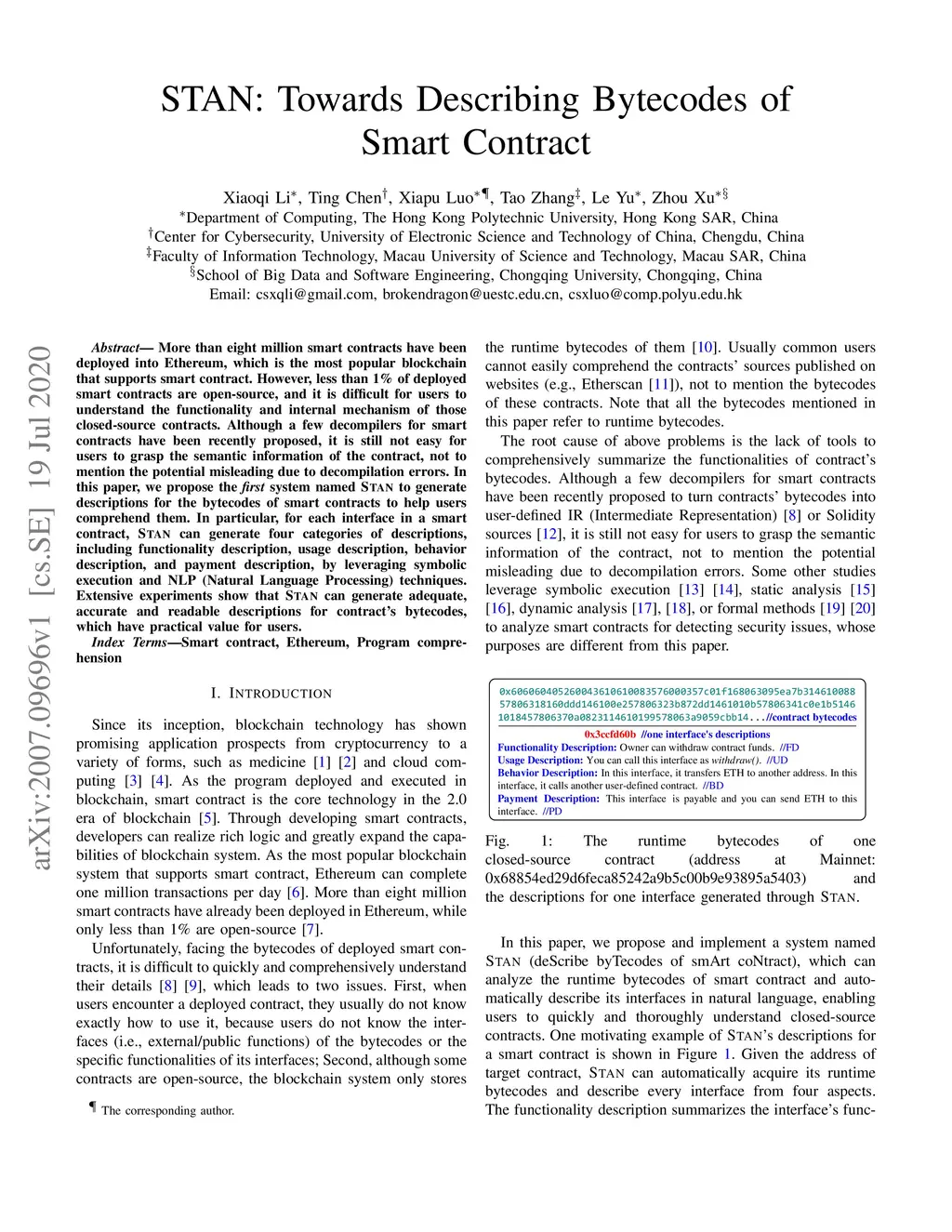 STAN: Towards Describing Bytecodes of Smart Contract