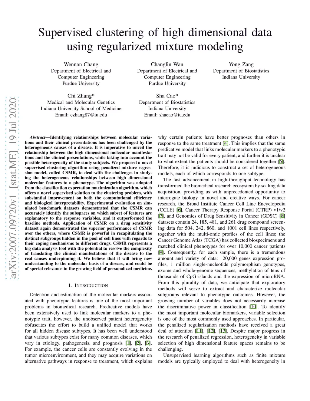 Identifying relationships between molecular variations and their clinical presentations has been challenged by the heterogeneous causes of a disease. It is imperative to unveil the relationship between the high dimensional molecular manifestations and the clinical presentations, while taking into account the possible heterogeneity of the study subjects. We proposed a novel supervised clustering algorithm using penalized mixture regression model, called CSMR, to deal with the challenges in studying the heterogeneous relationships between high dimensional molecular features to a phenotype. The algorithm was adapted from the classification expectation maximization algorithm, which offers a novel supervised solution to the clustering problem, with substantial improvement on both the computational efficiency and biological interpretability. Experimental evaluation on simulated benchmark datasets demonstrated that the CSMR can accurately identify the subspaces on which subset of features are explanatory to the response variables, and it outperformed the baseline methods. Application of CSMR on a drug sensitivity dataset again demonstrated the superior performance of CSMR over the others, where CSMR is powerful in recapitulating the distinct subgroups hidden in the pool of cell lines with regards to their coping mechanisms to different drugs. CSMR represents a big data analysis tool with the potential to resolve the complexity of translating the clinical manifestations of the disease to the real causes underpinning it. We believe that it will bring new understanding to the molecular basis of a disease, and could be of special relevance in the growing field of personalized medicine.