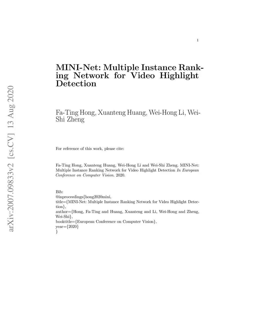 MINI-Net: Multiple Instance Ranking Network for Video Highlight