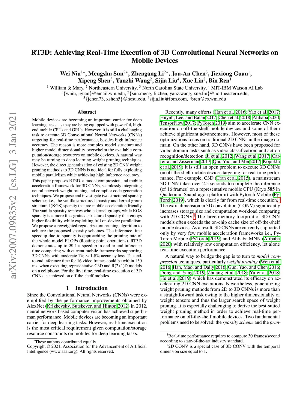 RT3D: Achieving Real-Time Execution of 3D Convolutional Neural Networks