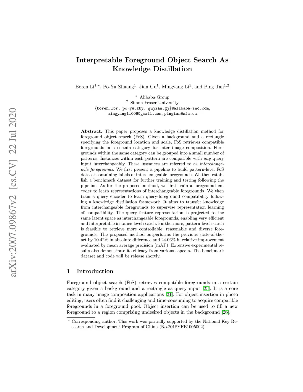 Interpretable Foreground Object Search As Knowledge Distillation