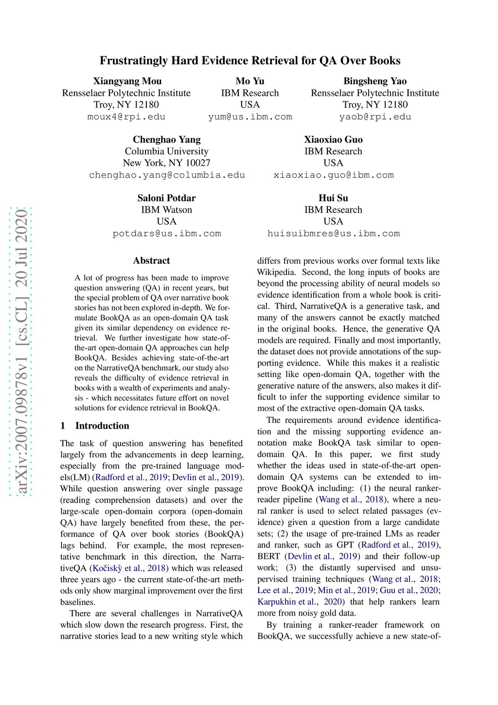Frustratingly Hard Evidence Retrieval for QA Over Books