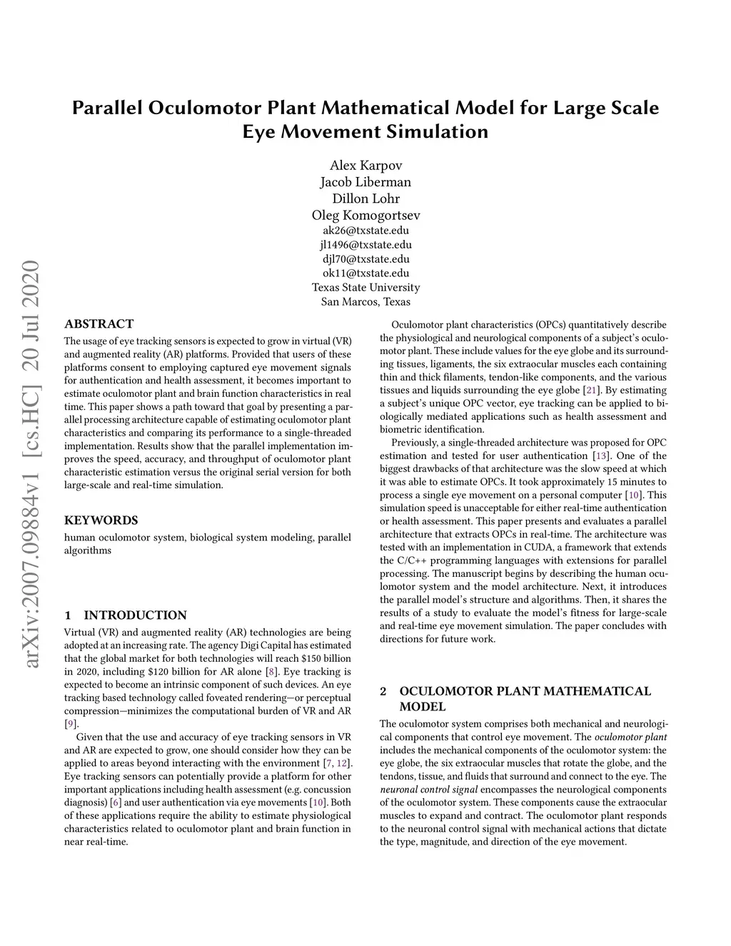 Parallel Oculomotor Plant Mathematical Model for Large Scale Eye