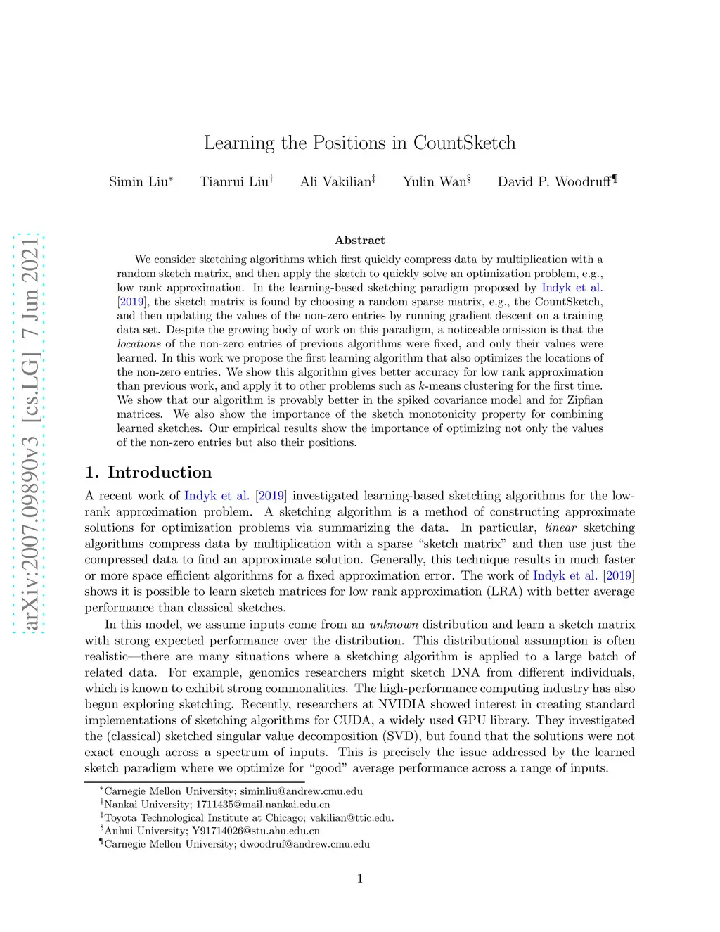 We consider sketching algorithms which first quickly compress data by multiplication with a random sketch matrix, and then apply the sketch to quickly solve an optimization problem, e.g., low rank approximation. In the learning-based sketching paradigm proposed by Indyk et al. [2019], the sketch matrix is found by choosing a random sparse matrix, e.g., the CountSketch, and then updating the values of the non-zero entries by running gradient descent on a training data set. Despite the growing body of work on this paradigm, a noticeable omission is that the locations of the non-zero entries of previous algorithms were fixed, and only their values were learned. In this work we propose the first learning algorithm that also optimizes the locations of the non-zero entries. We show this algorithm gives better accuracy for low rank approximation than previous work, and apply it to other problems such as -means clustering for the first time. We show that our algorithm is provably better in the spiked covariance model and for Zipfian matrices. We also show the importance of the sketch monotonicity property for combining learned sketches. Our empirical results show the importance of optimizing not only the values of the non-zero entries but also their positions.