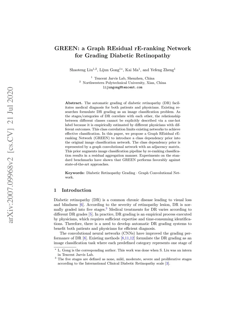 GREEN: a Graph REsidual rE-ranking Network for Grading Diabetic