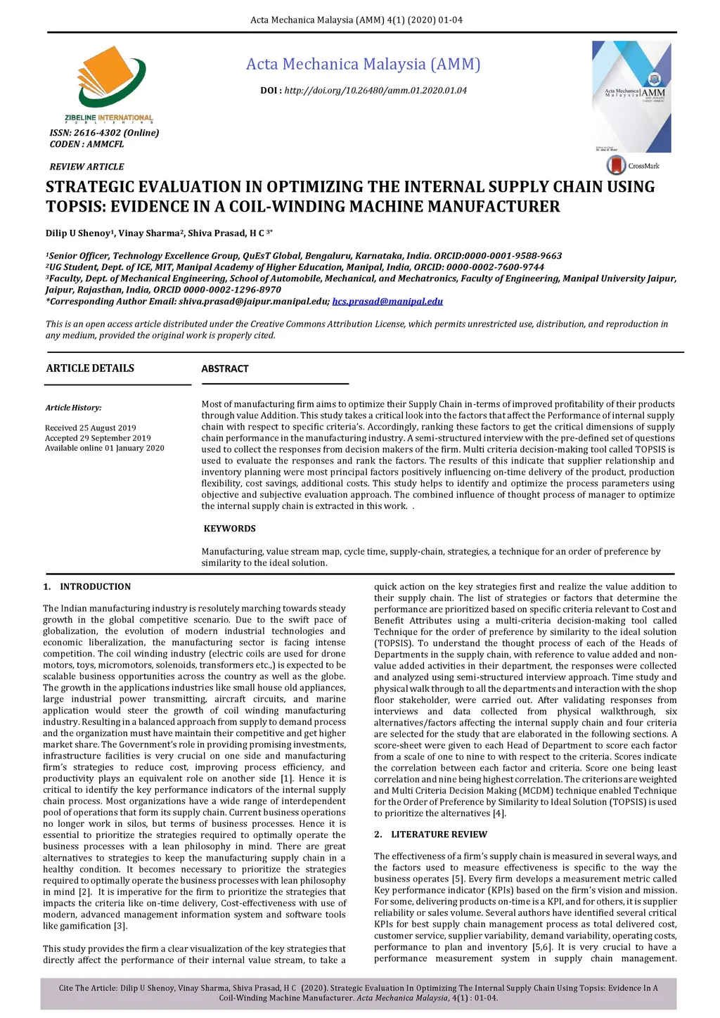 TOPSIS: Evidence In A Coil Winding Machine Manufacturer