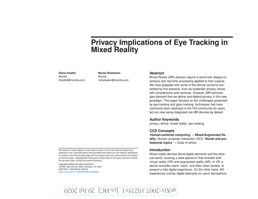 Mixed Reality (MR) devices require a world with always-on sensors and real-time processing applied to their outputs. We have grappled with some of the ethical concerns presented by this scenario, such as bystander privacy issues with smartphones and cameras. However, MR technologies demand that we define and defend privacy in this new paradigm. This paper focuses on the challenges presented by eye tracking and gaze tracking, techniques that have commonly been deployed in the HCI community for years but are now being integrated into MR devices by default.