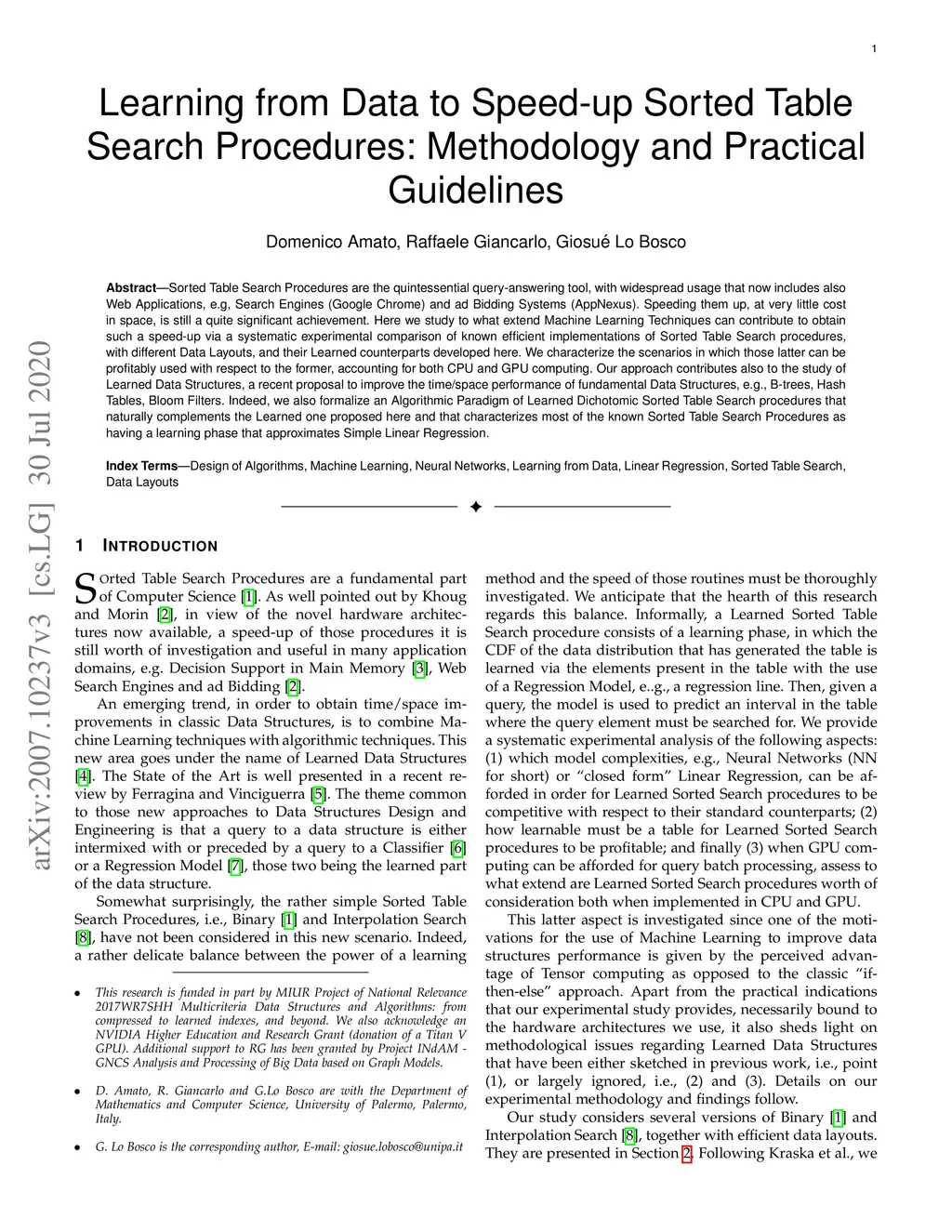 Learned Data Structures, a recent research area overlapping Machine Learning and Data Structure, uses learning from data in order to improve the time/space performance of classic data structures, e.g., Search Trees, Hash Tables and Bloom Filters. It is also claimed that the use of GPUs for the learning phase contributes to make those approaches widespread. Yet, the role of GPU computing with respect to Learned Data Structures is unclear. Moreover, none of such studies has been devoted to algorithms for Sorted Table Search, that are both fundamental and still widely used in several application domains. We provide such a study here, via a systematic experimental comparison of known efficient implementations of Sorted Table Search procedures and their Learned counterparts developed here, obtaining valuable methodological insights into the use of those latter. Specifically, we characterize the scenarios in which those latter can be profitably used with respect to the former, accounting for both CPU and GPU computing. We also formalize an Algorithmic Paradigm of Learned Dichotomic Sorted Table Search procedures that naturally complements the Learned one and that characterizes most of the known Sorted Table Search Procedures as having a "learning phase" that approximates Simple Linear Regression.