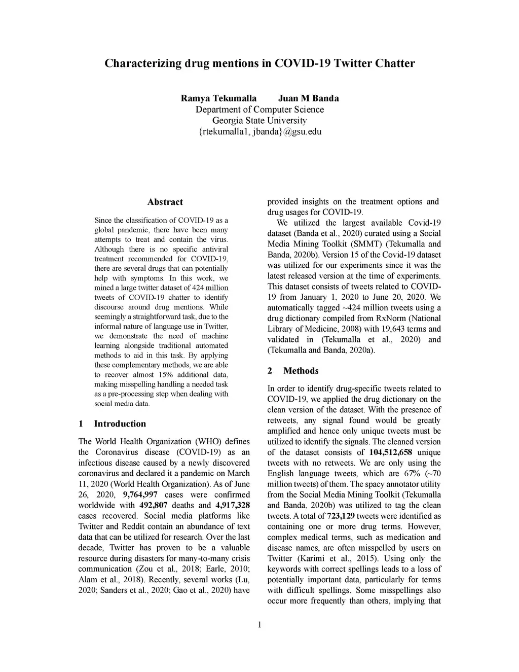 Characterizing drug mentions in COVID-19 Twitter Chatter