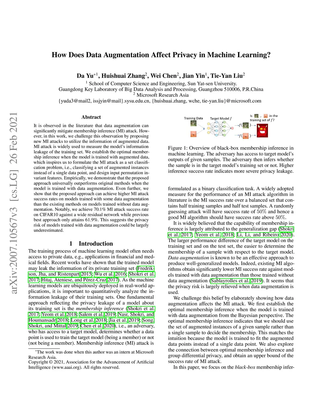 It is observed in the literature that data augmentation can significantly mitigate membership inference (MI) attack. However, in this work, we challenge this observation by proposing new MI attacks to utilize the information of augmented data. MI attack is widely used to measure the model's information leakage of the training set. We establish the optimal membership inference when the model is trained with augmented data, which inspires us to formulate the MI attack as a set classification problem, i.e., classifying a set of augmented instances instead of a single data point, and design input permutation invariant features. Empirically, we demonstrate that the proposed approach universally outperforms original methods when the model is trained with data augmentation. Even further, we show that the proposed approach can achieve higher MI attack success rates on models trained with some data augmentation than the existing methods on models trained without data augmentation. Notably, we achieve a 70.1% MI attack success rate on CIFAR10 against a wide residual network while the previous best approach only attains 61.9%. This suggests the privacy risk of models trained with data augmentation could be largely underestimated.