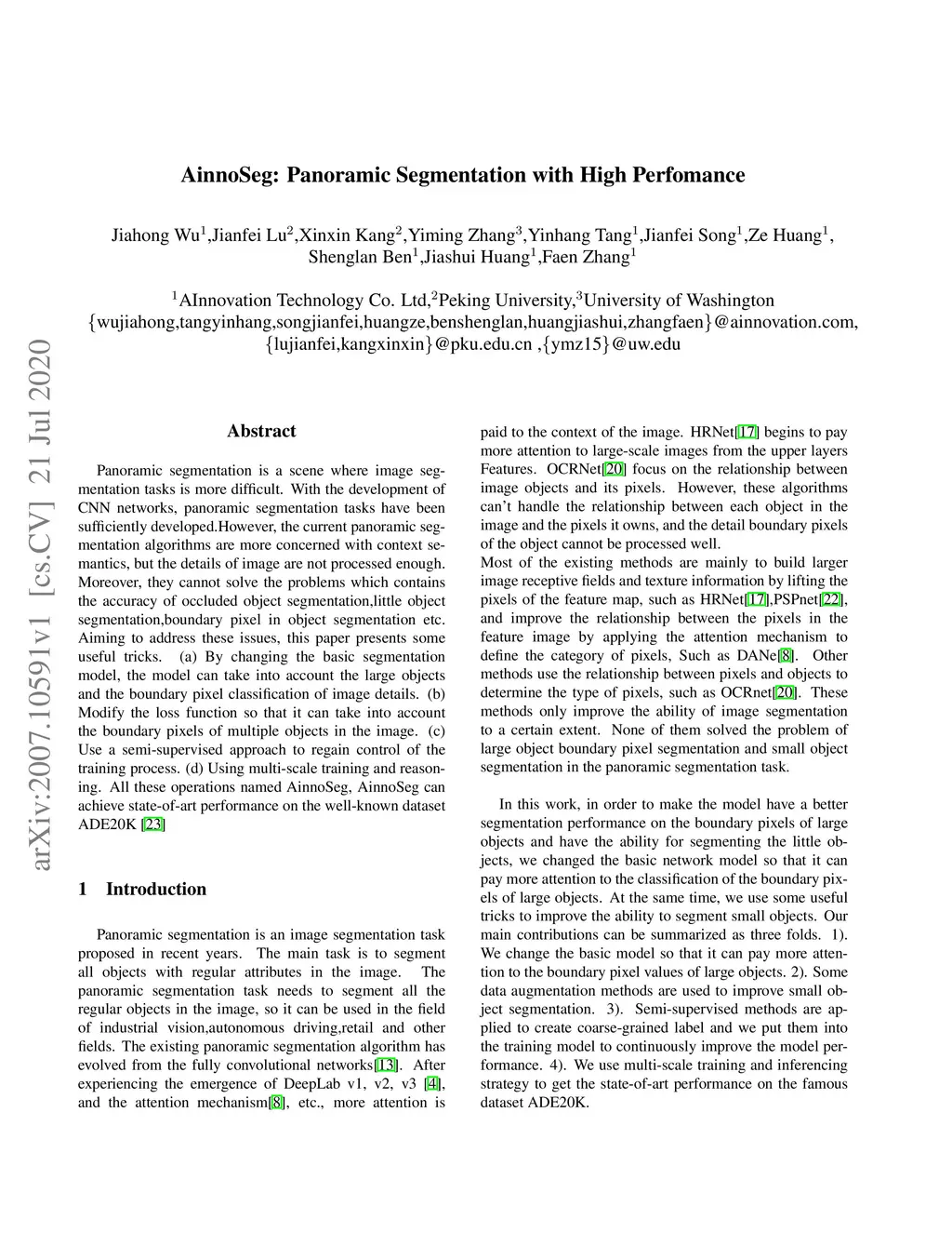 AinnoSeg: Panoramic Segmentation with High Perfomance
