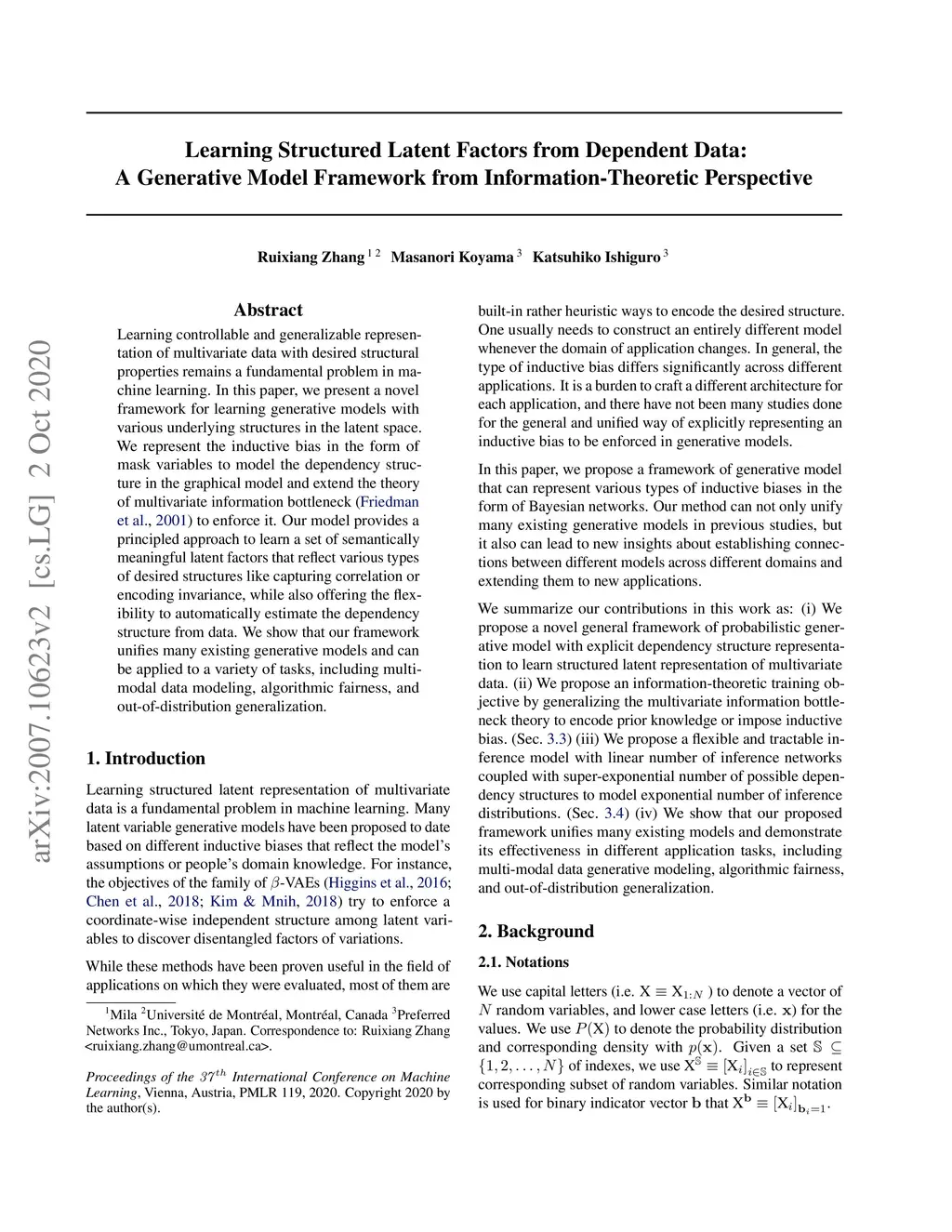 Learning controllable and generalizable representation of multivariate data with desired structural properties remains a fundamental problem in machine learning. In this paper, we present a novel framework for learning generative models with various underlying structures in the latent space. We represent the inductive bias in the form of mask variables to model the dependency structure in the graphical model and extend the theory of multivariate information bottleneck to enforce it. Our model provides a principled approach to learn a set of semantically meaningful latent factors that reflect various types of desired structures like capturing correlation or encoding invariance, while also offering the flexibility to automatically estimate the dependency structure from data. We show that our framework unifies many existing generative models and can be applied to a variety of tasks including multi-modal data modeling, algorithmic fairness, and invariant risk minimization.
