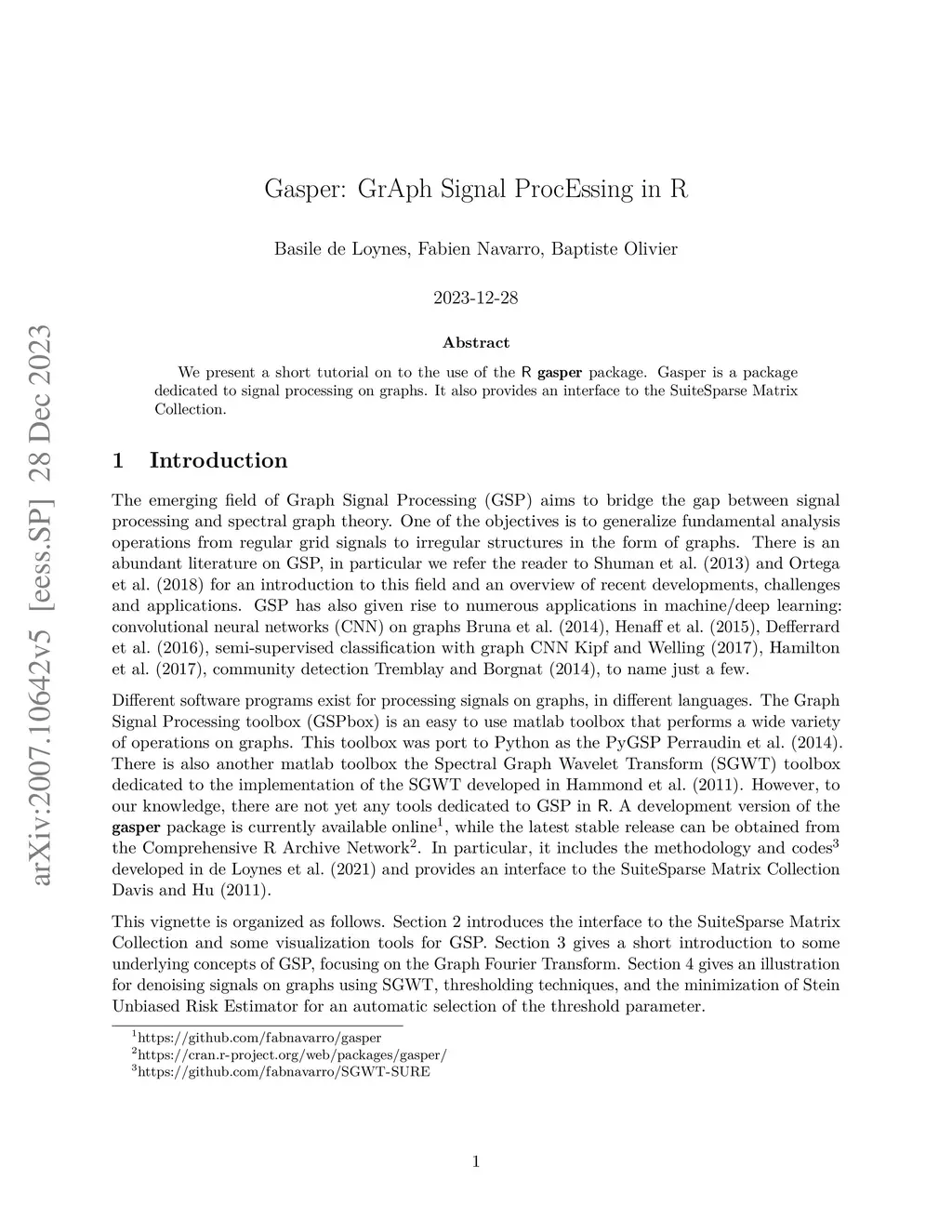 We present a short tutorial on to the use of the R gasper package. Gasper is a package dedicated to signal processing on graphs. It also provides an interface to the SuiteSparse Matrix Collection.