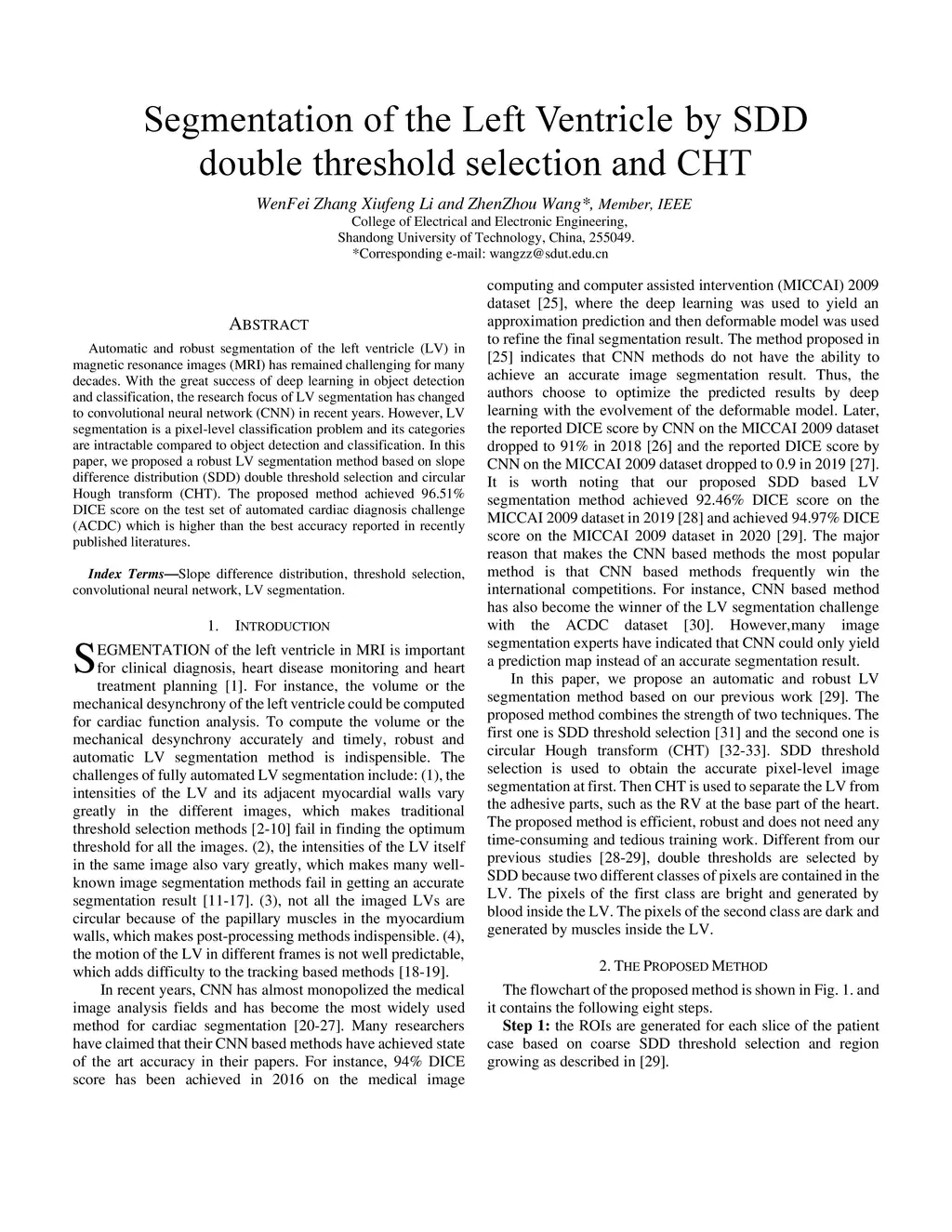 Segmentation of the Left Ventricle by SDD double threshold selection and