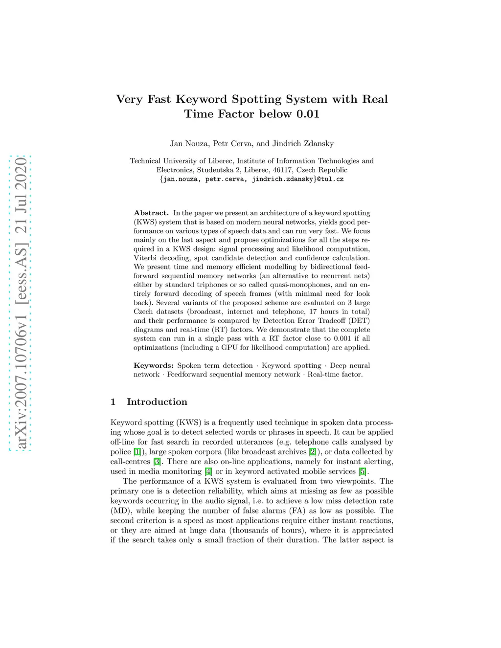 Very Fast Keyword Spotting System with Real Time Factor below 0.01