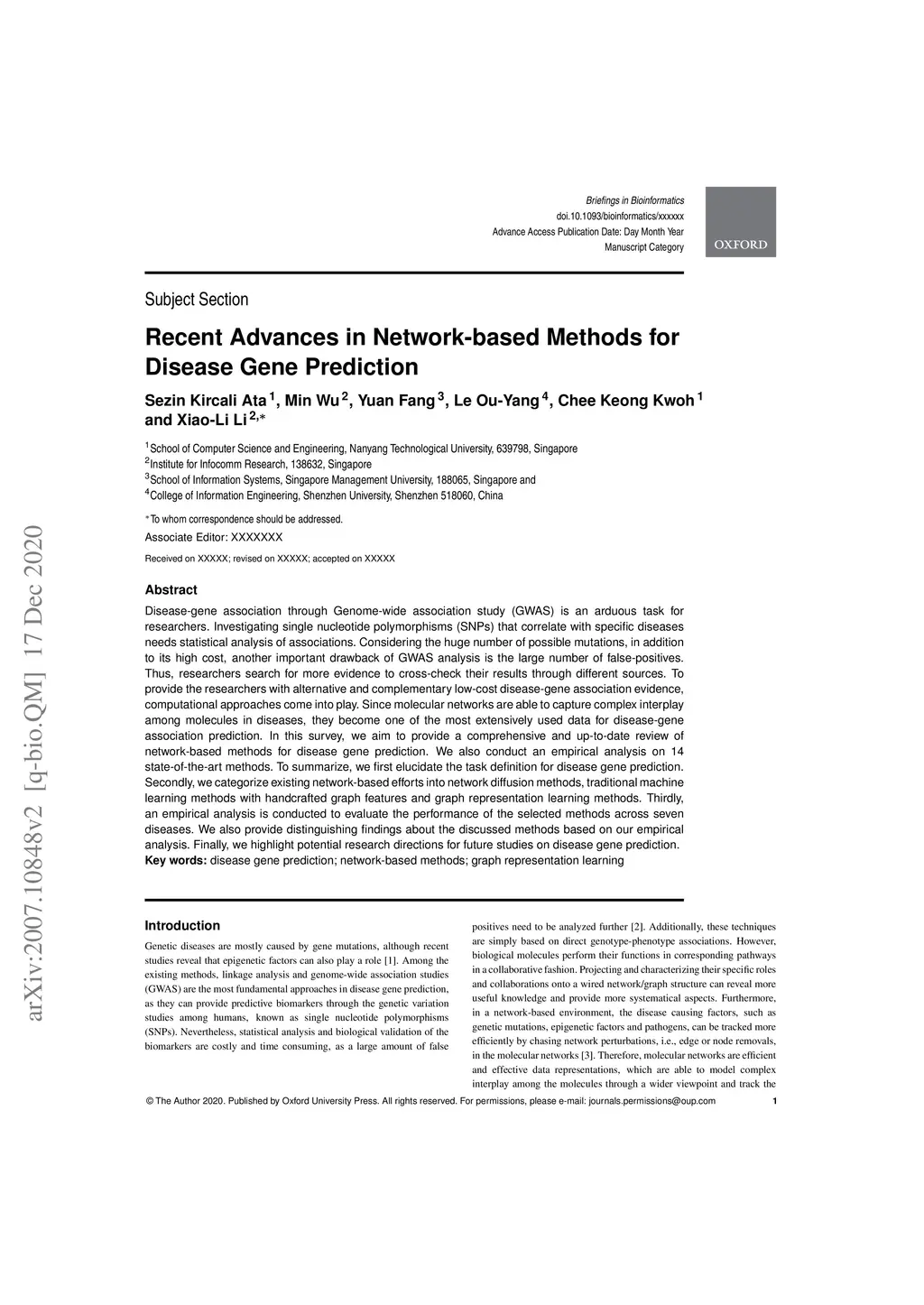 Recent Advances in Network-based Methods for Disease Gene Prediction
