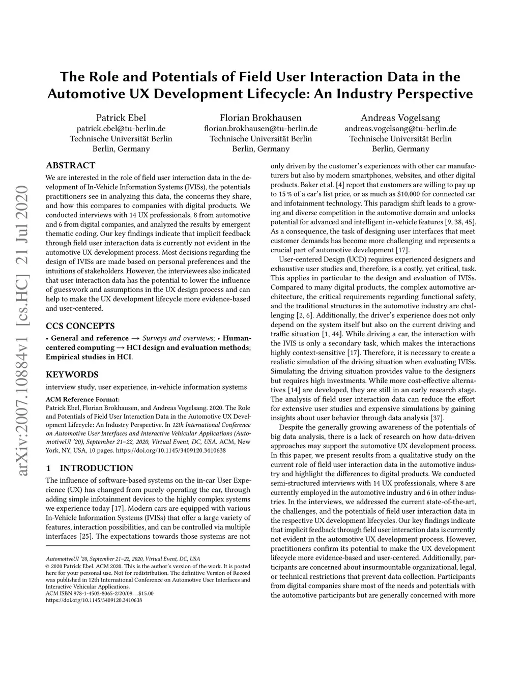 The Role and Potentials of Field User Interaction Data in the Automotive